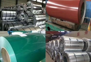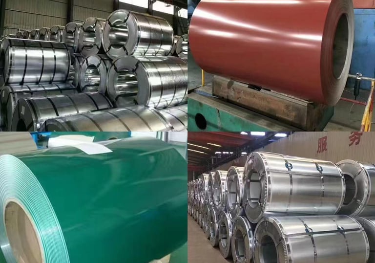 PPGI coils in hot, colored, cold, and galvanized finishes for varied needs.